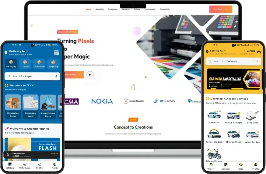 | Single Vendor | Android + iOS + Landing Page | Multiple Business, Delivery App | ~₹90,000 |